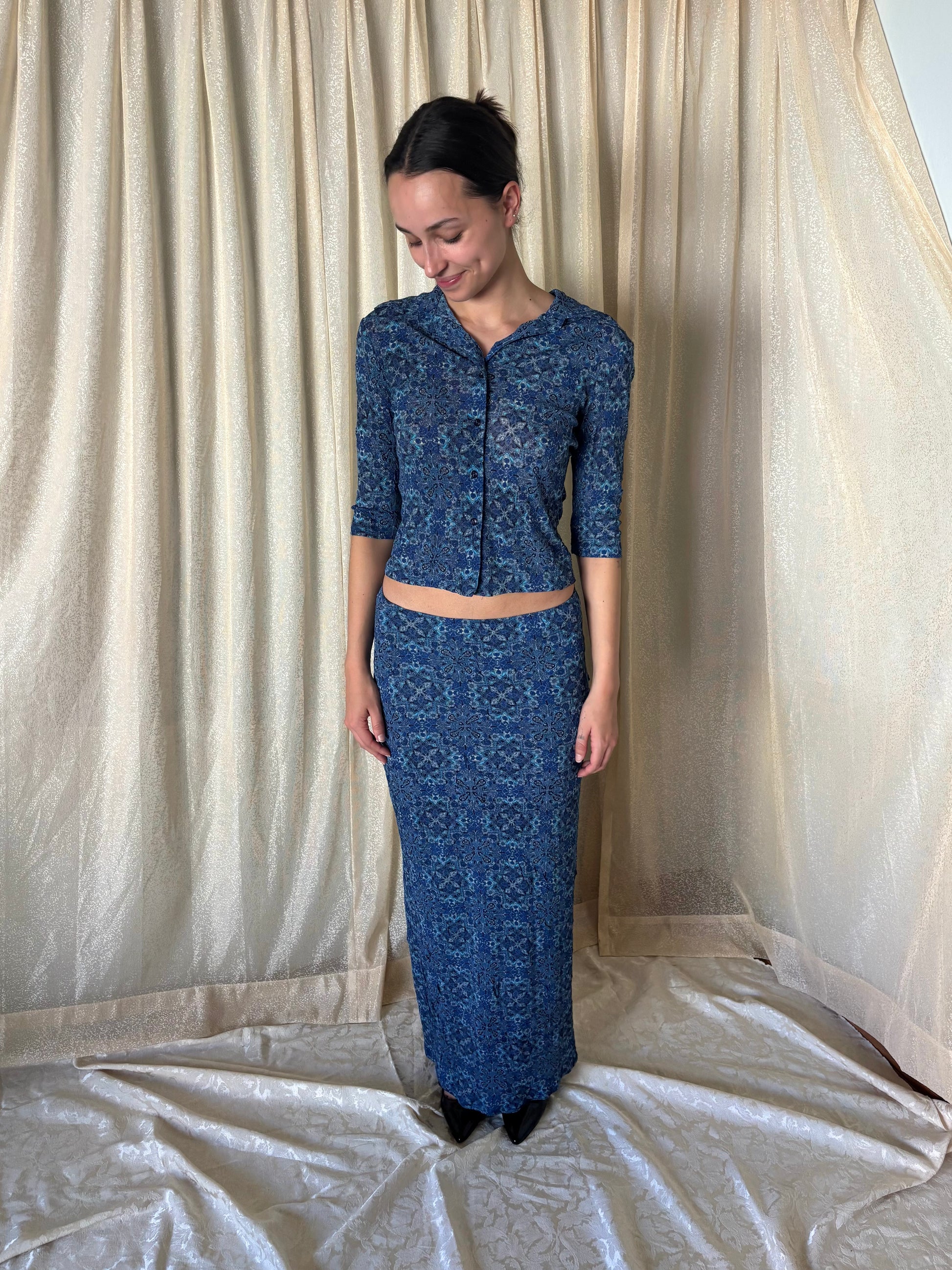 90s 2pc set by NC Love featuring a multi-blue floral pattern.