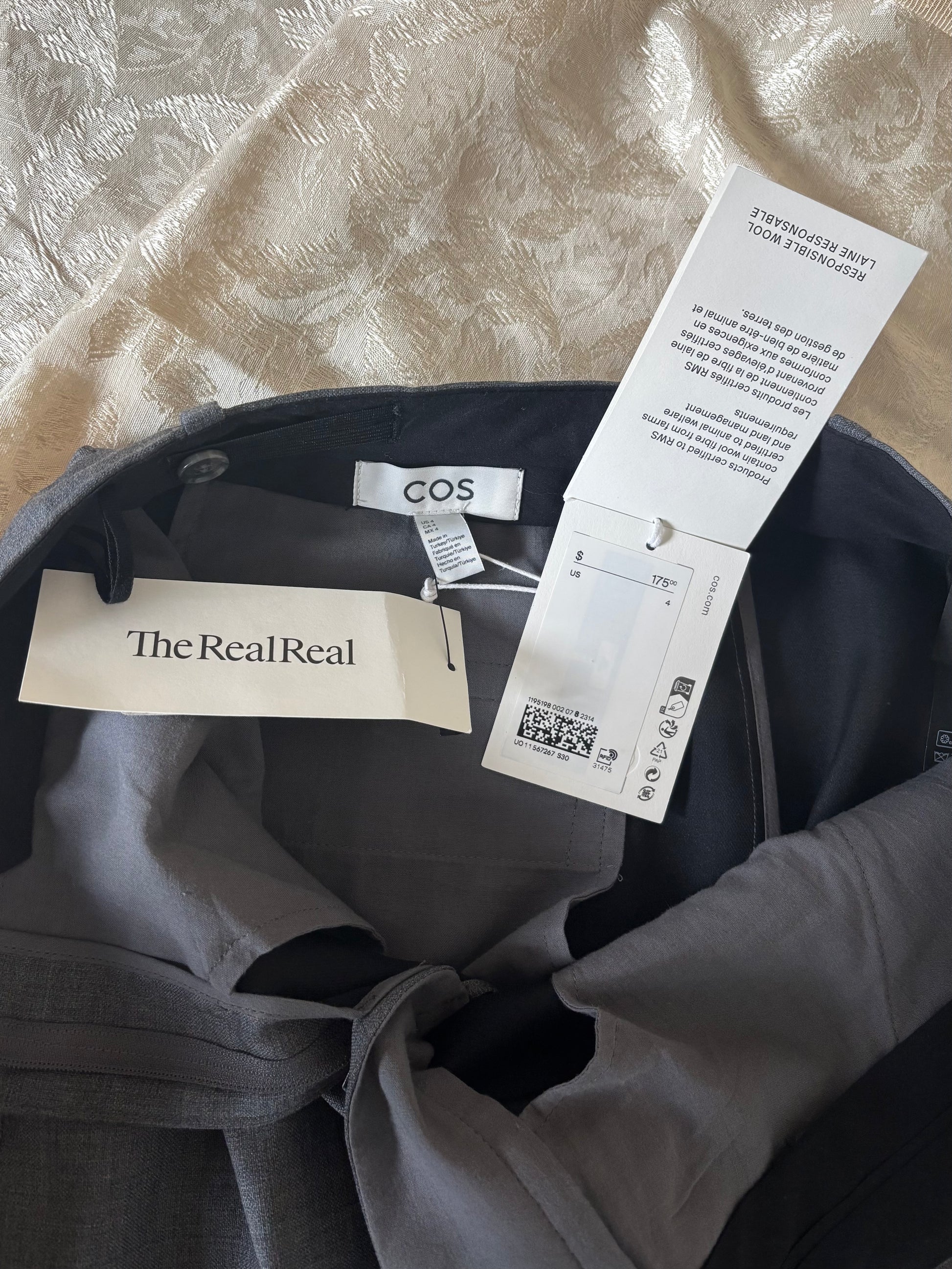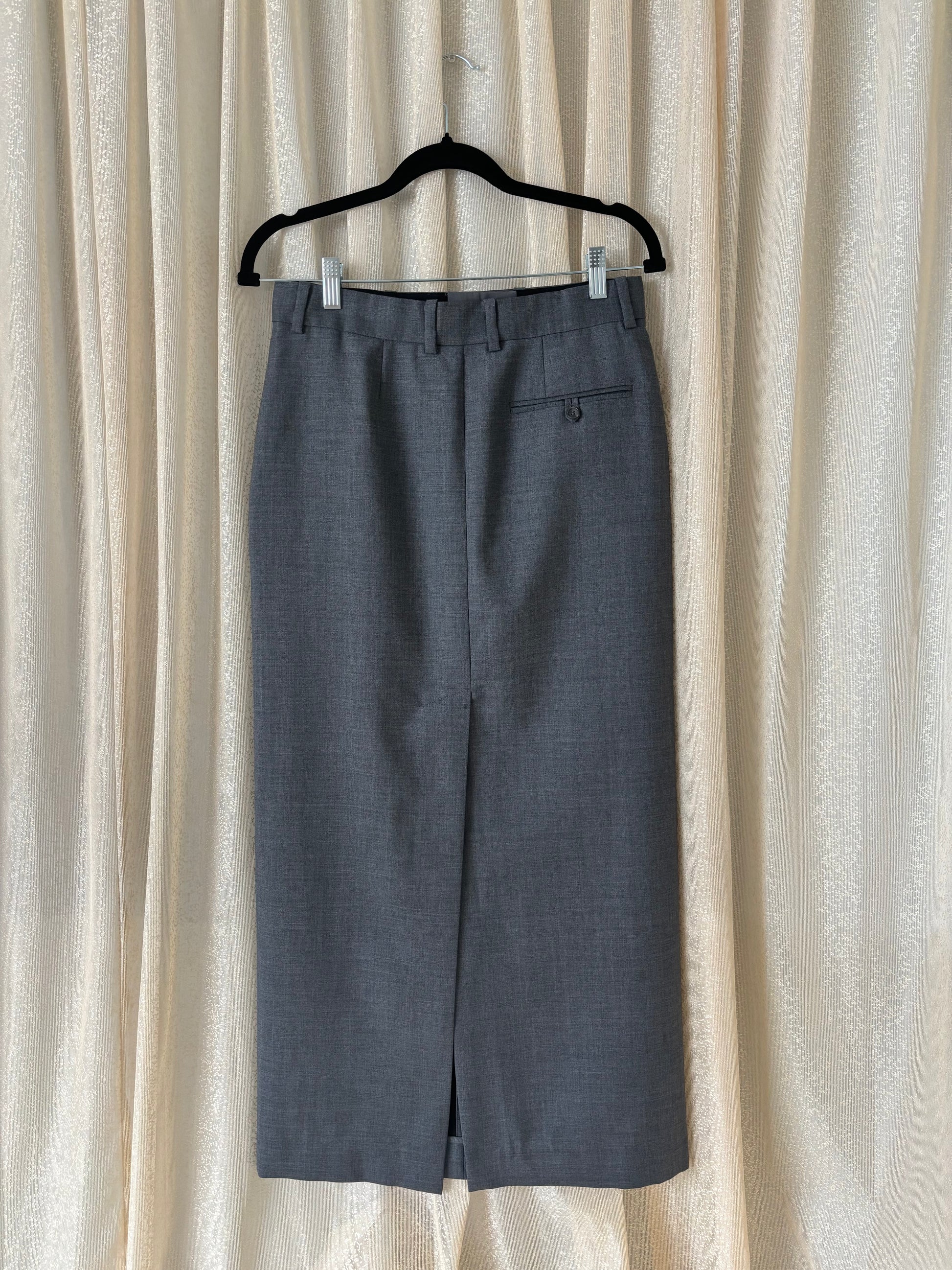 Sleek grey wool column maxi skirt from COS Autumn Winter 2023 collection. Features belt loops and two front & one back pocket.