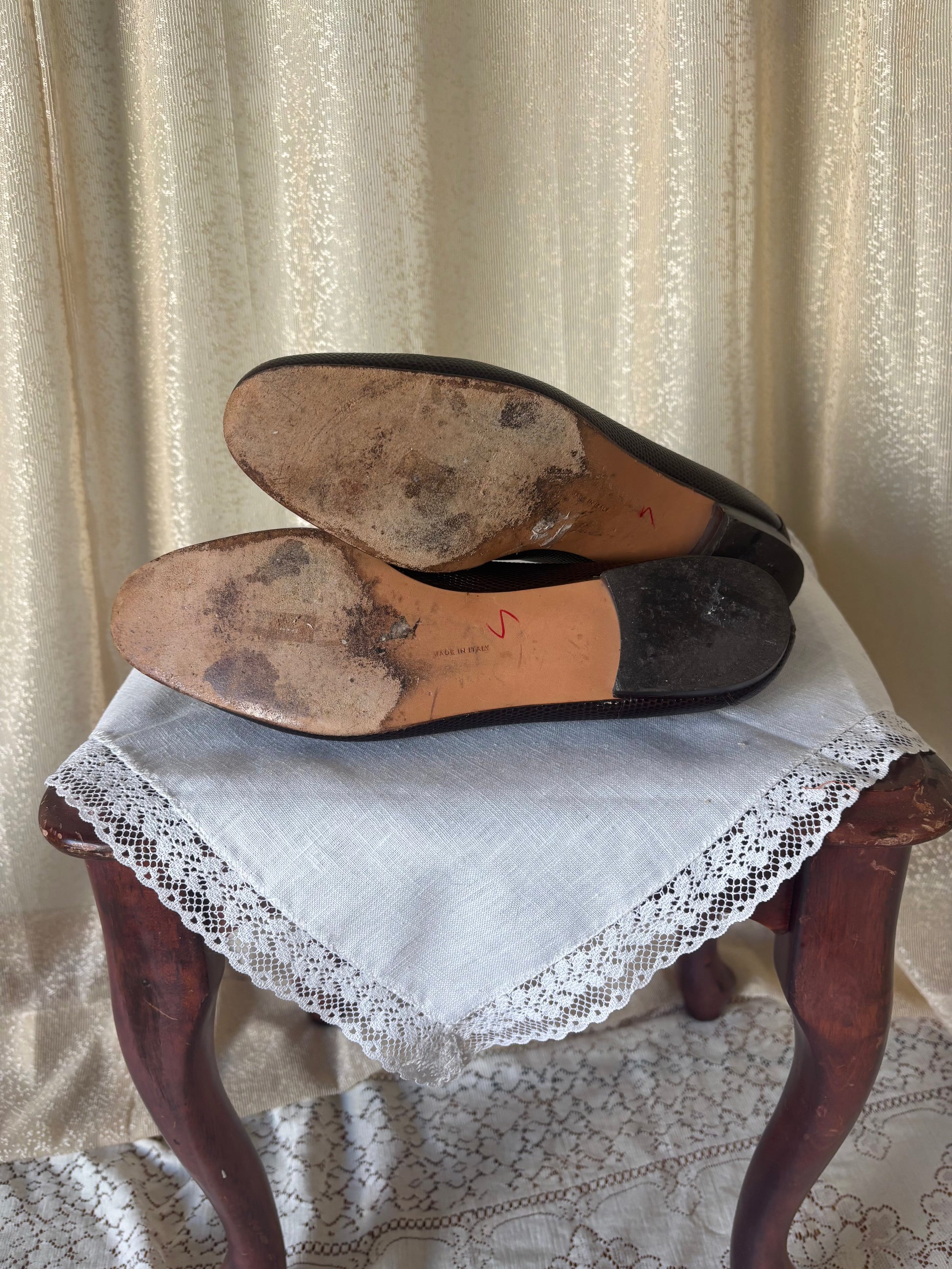 Vintage Ferragamo lizard embossed loafers