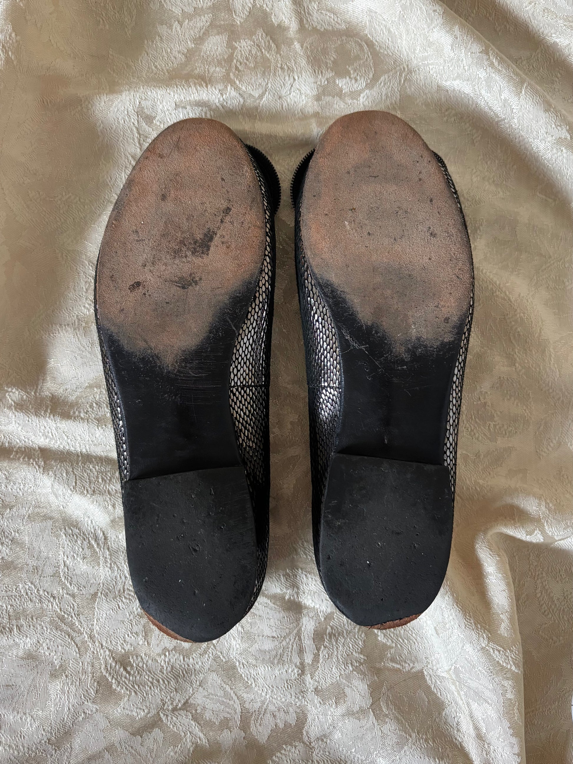 Metallic zipper-trim bow flats