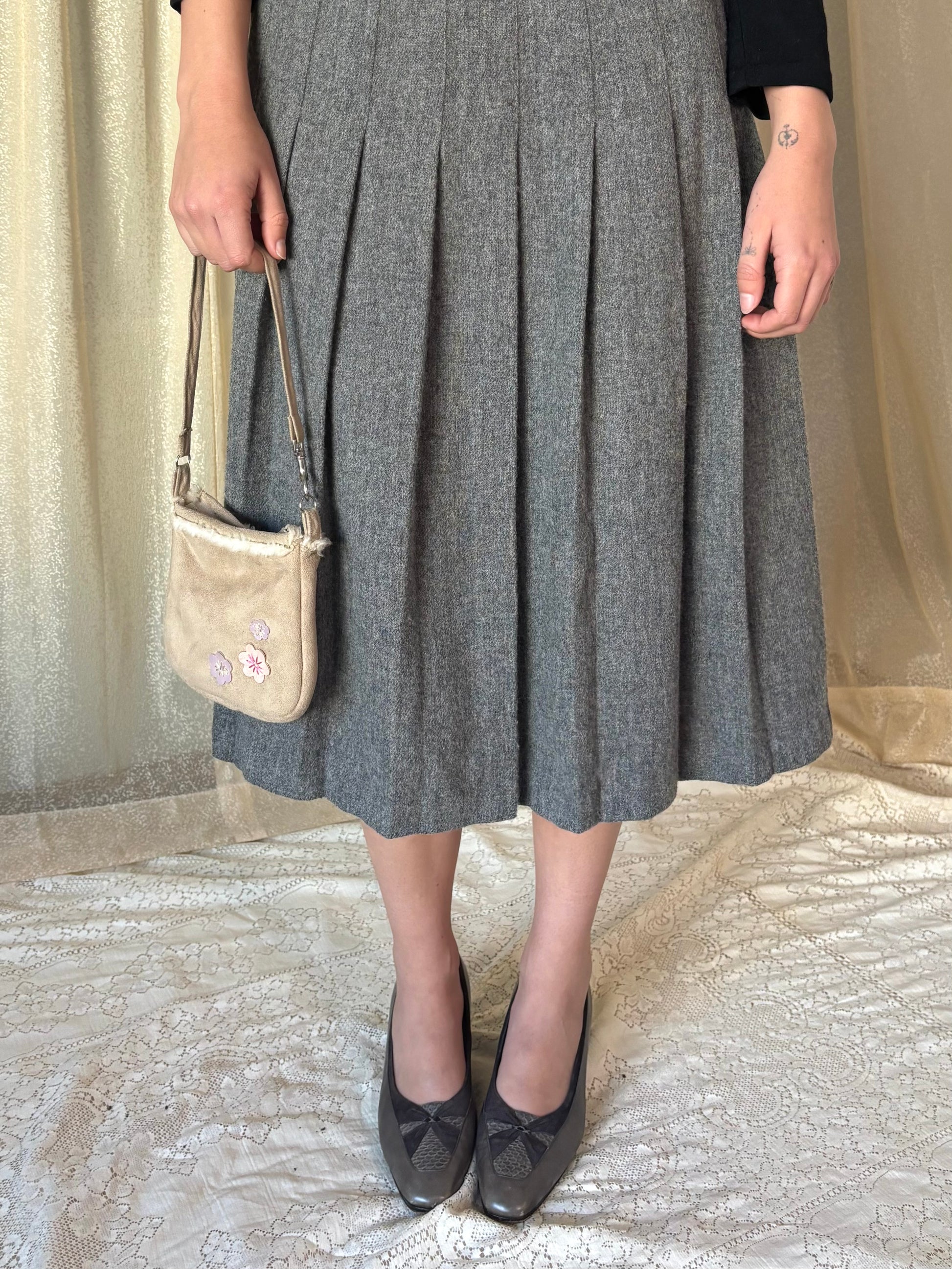 00s mini bag with faux fur interior and floral applique. Features zipper closure and strap with hook. Mine when I was a little girl!