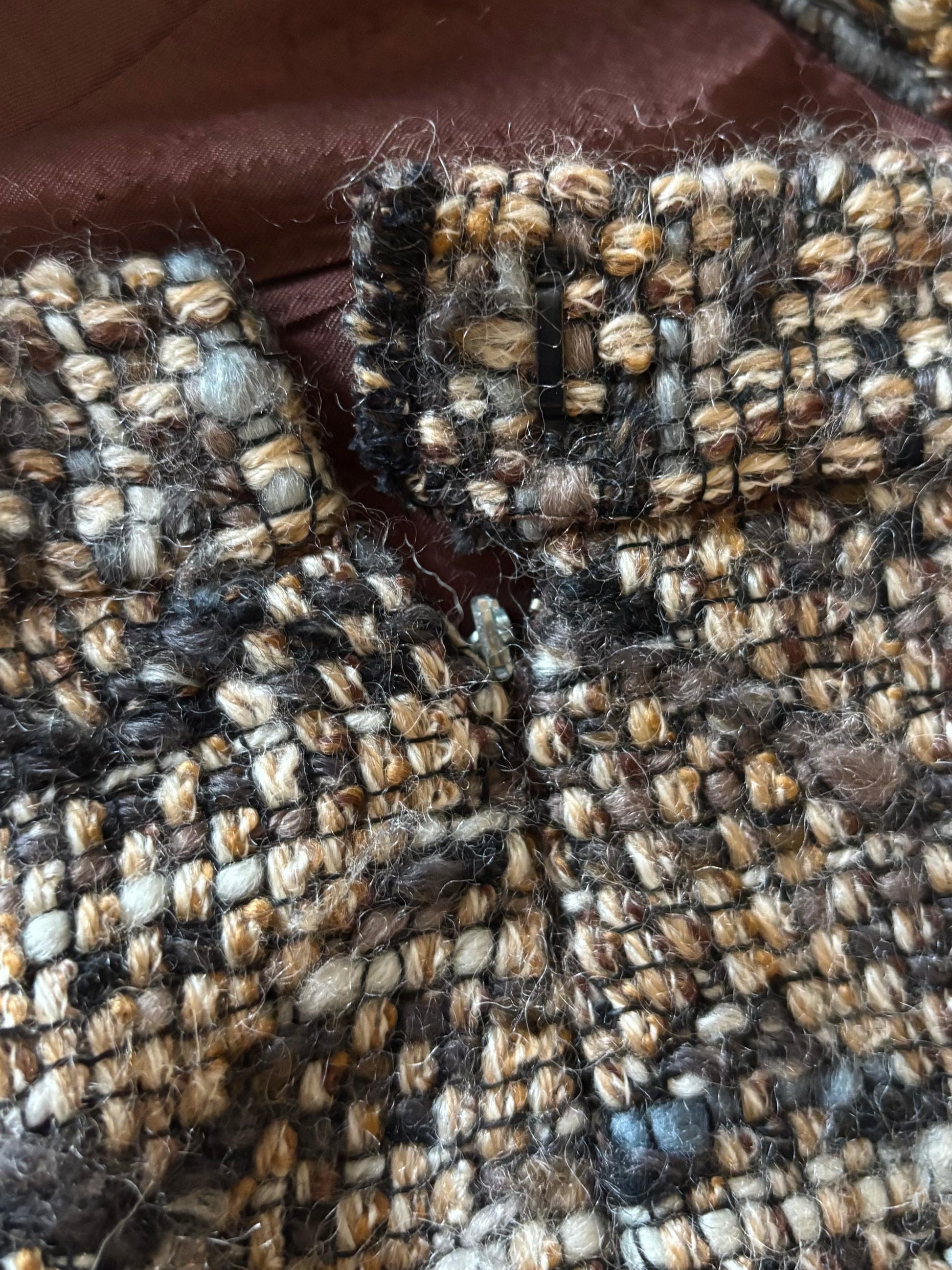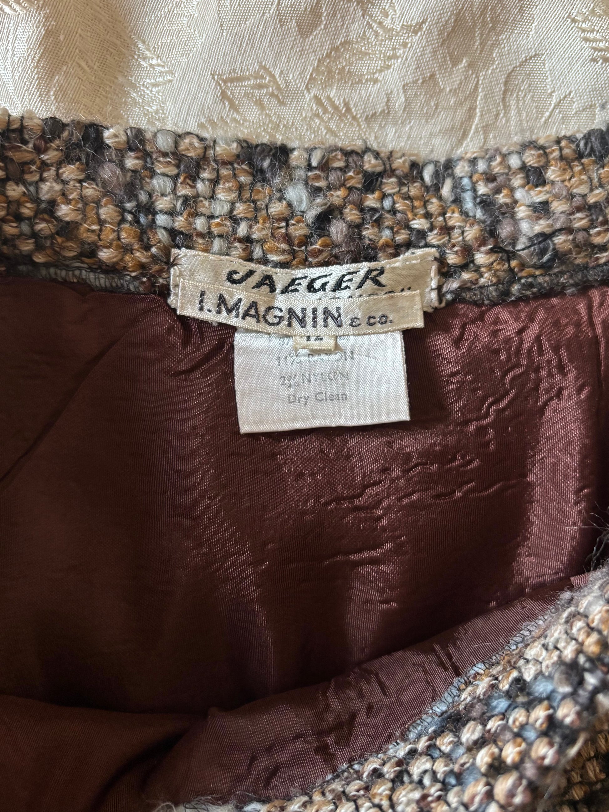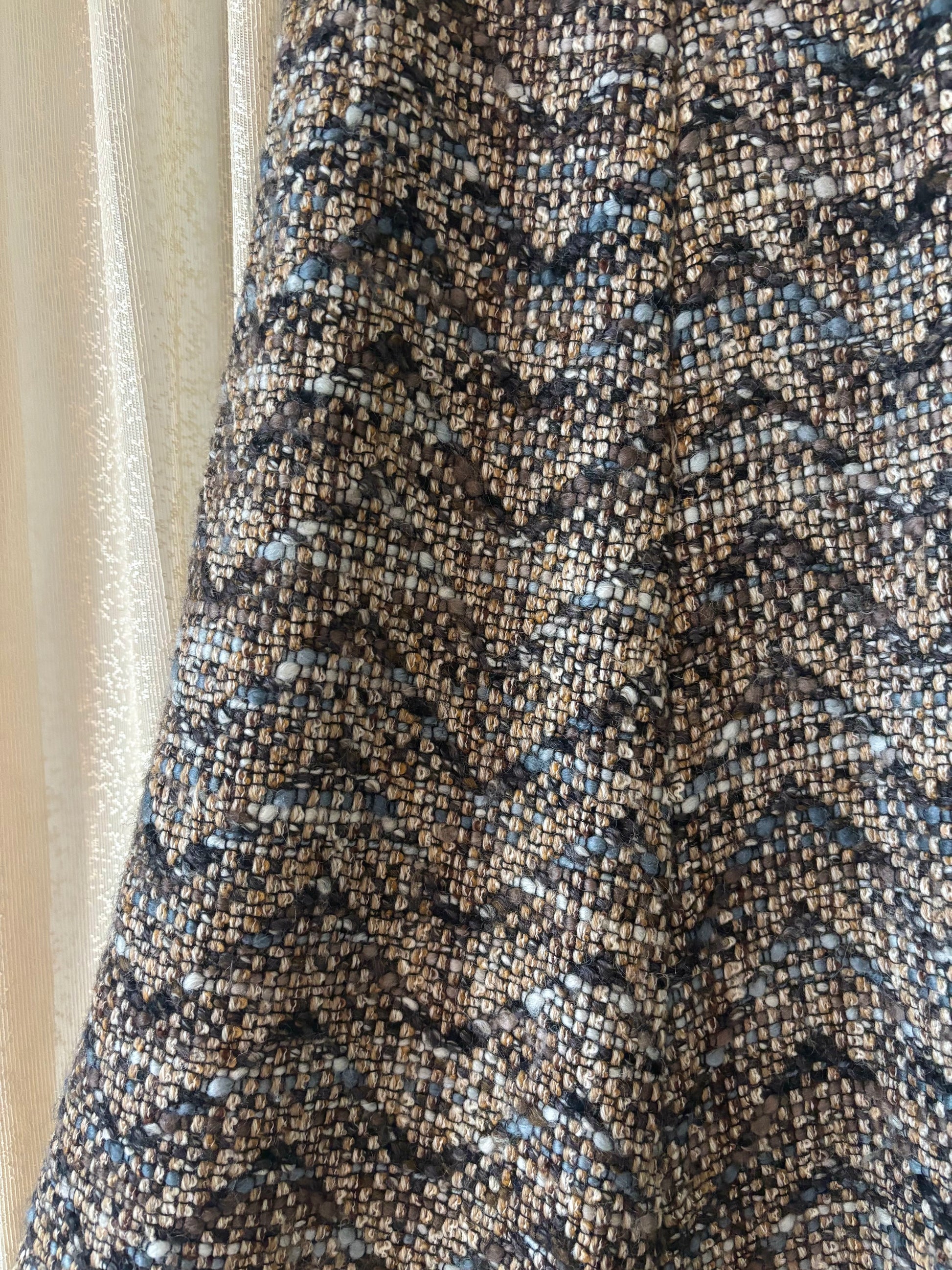 Incredible 60s heavyweight wool chevron skirt by Jaegar for Isaac Magnin & Co. Zips and clasps on the side.