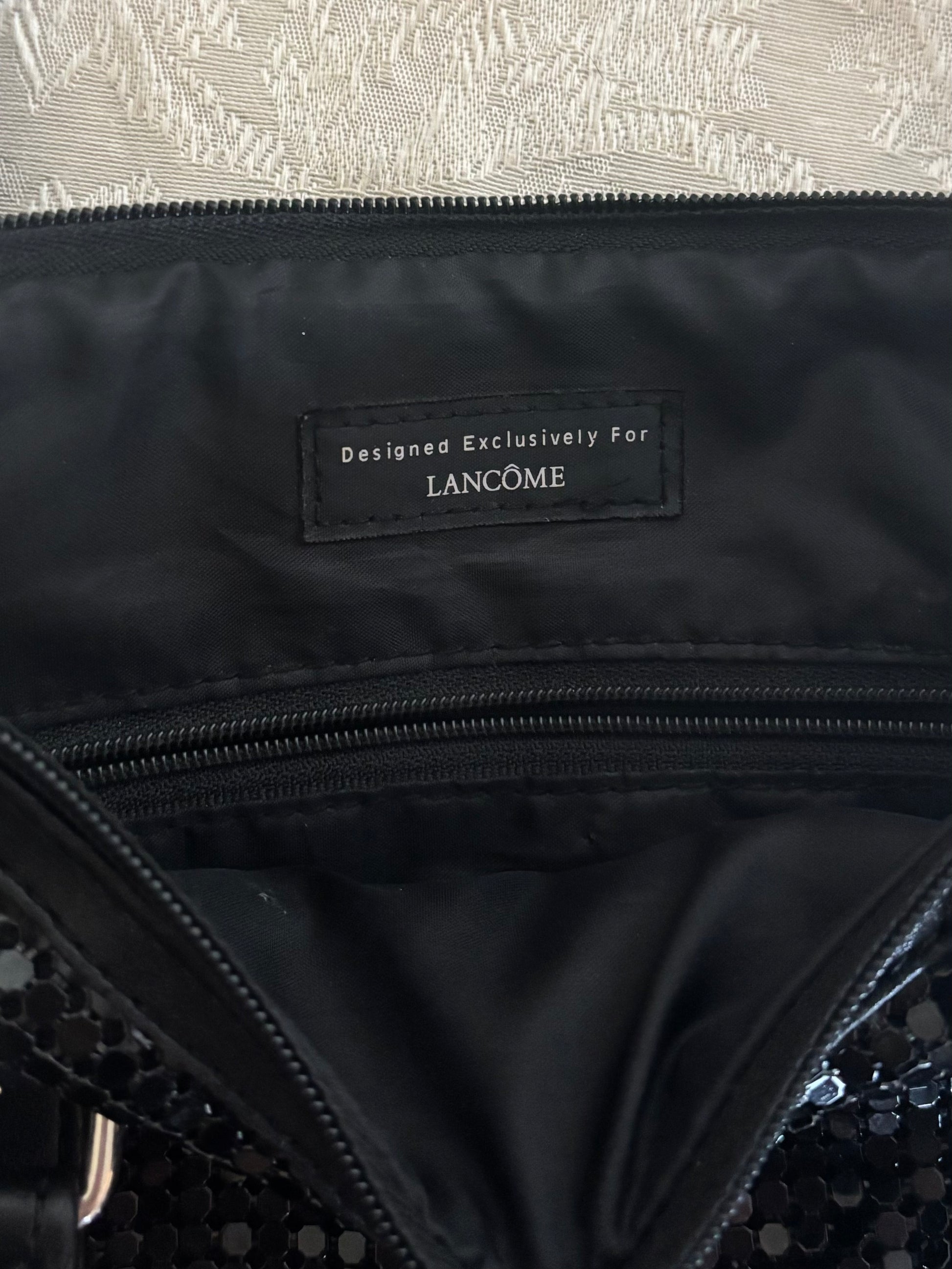 Adorable metallic black chainmail and leather bag from Lancôme. Features two interior pockets (one zippered).