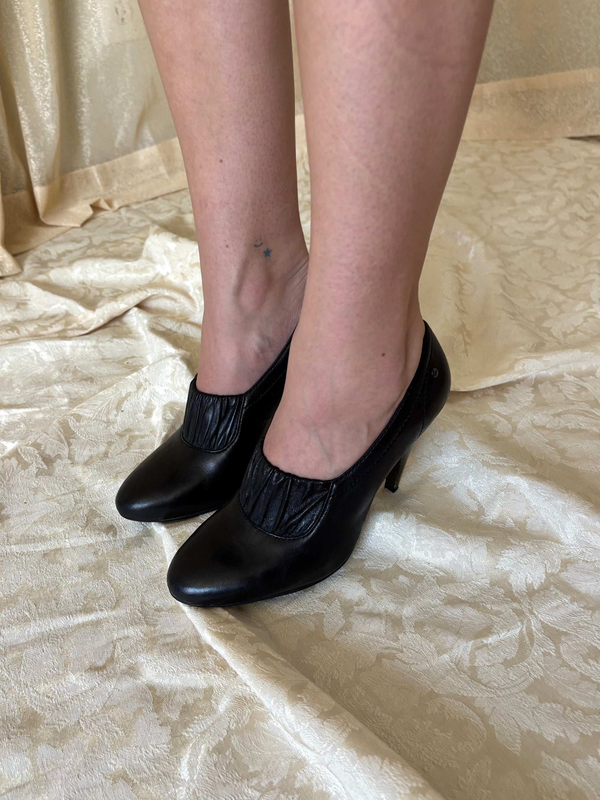 Coach leather Adra pumps. Pleated area is soft and stretchy.