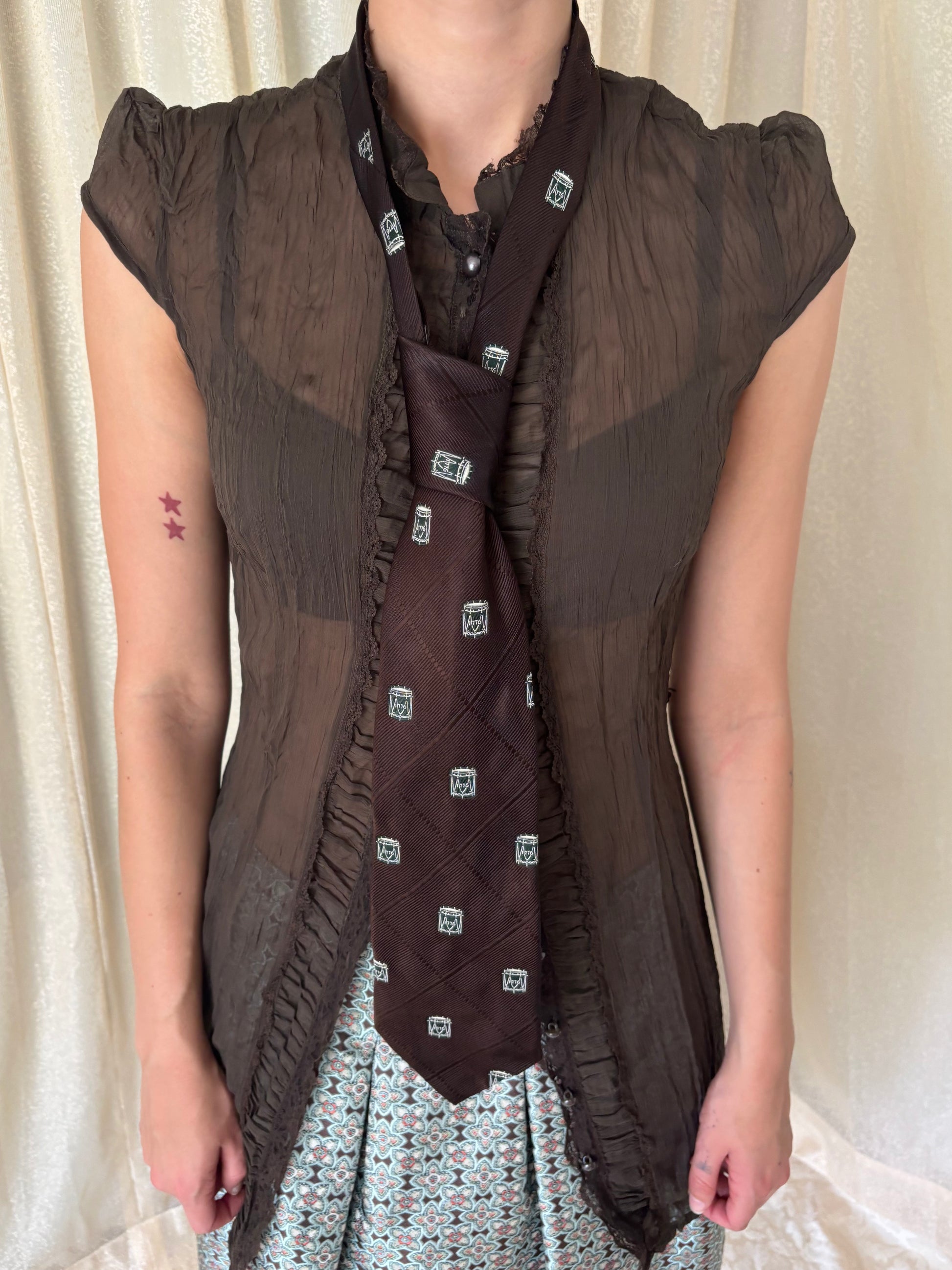 Vintage tie made and sold in 1976 to celebrate the 200th Anniversary of the USA. Features a drum pattern with the year 1776, symbolizing the American Revolutionary War. Made by Briar and sold by Roos Atkins.
