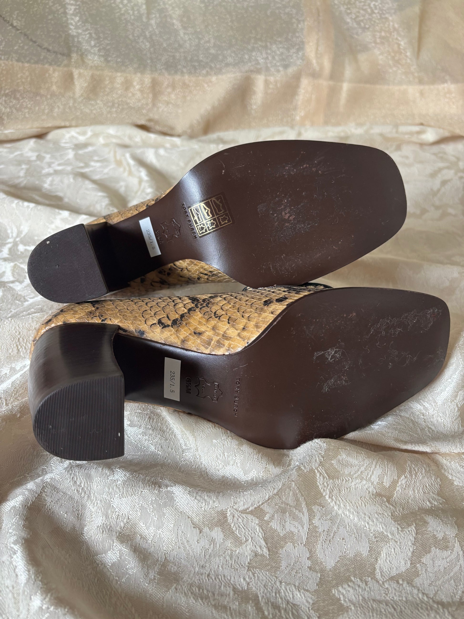 Size women's 6.5M. Heel-to-toe length of approx. 10" with heel height of 3"