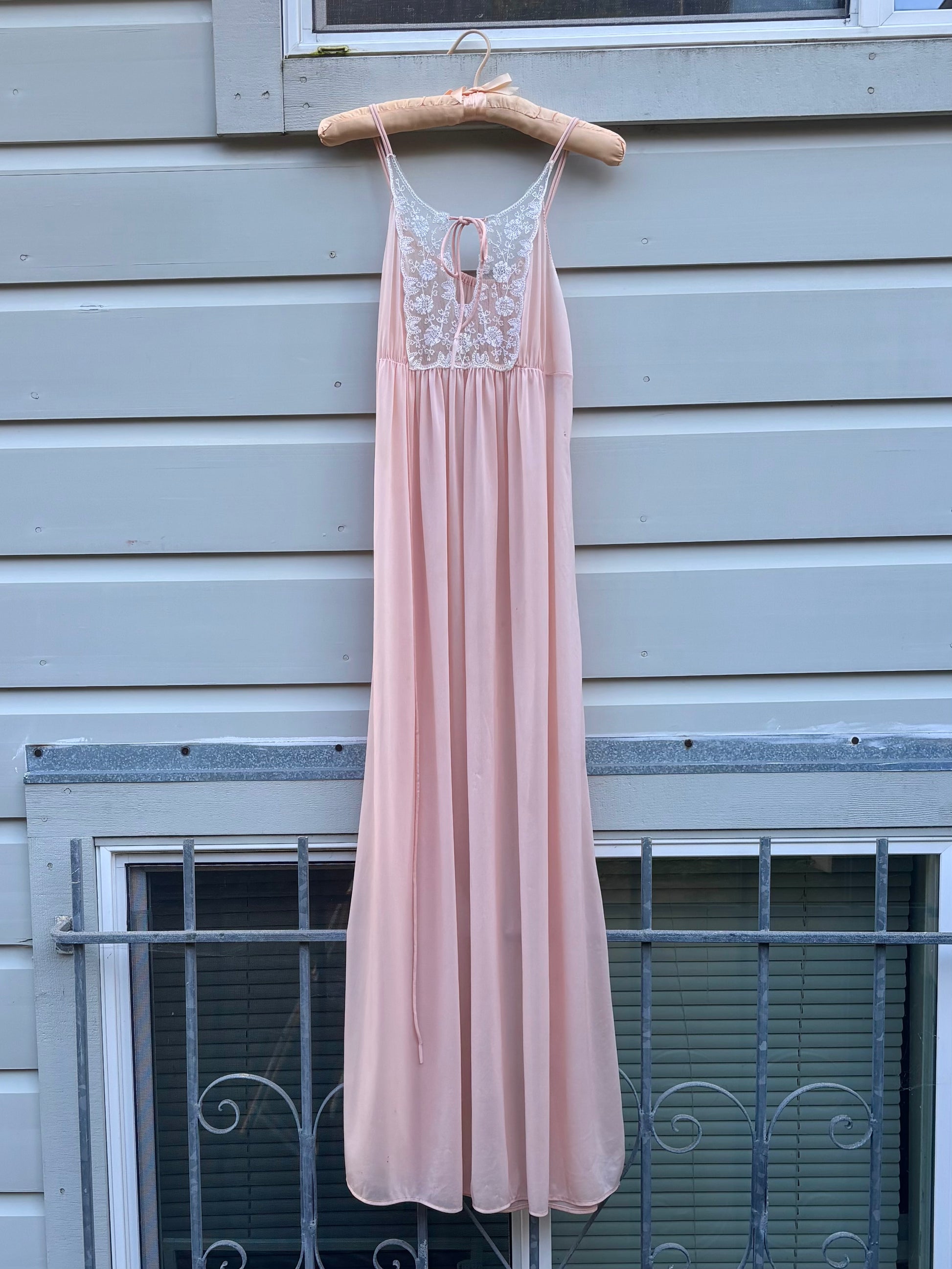 Vintage pink embroidered lace nightgown