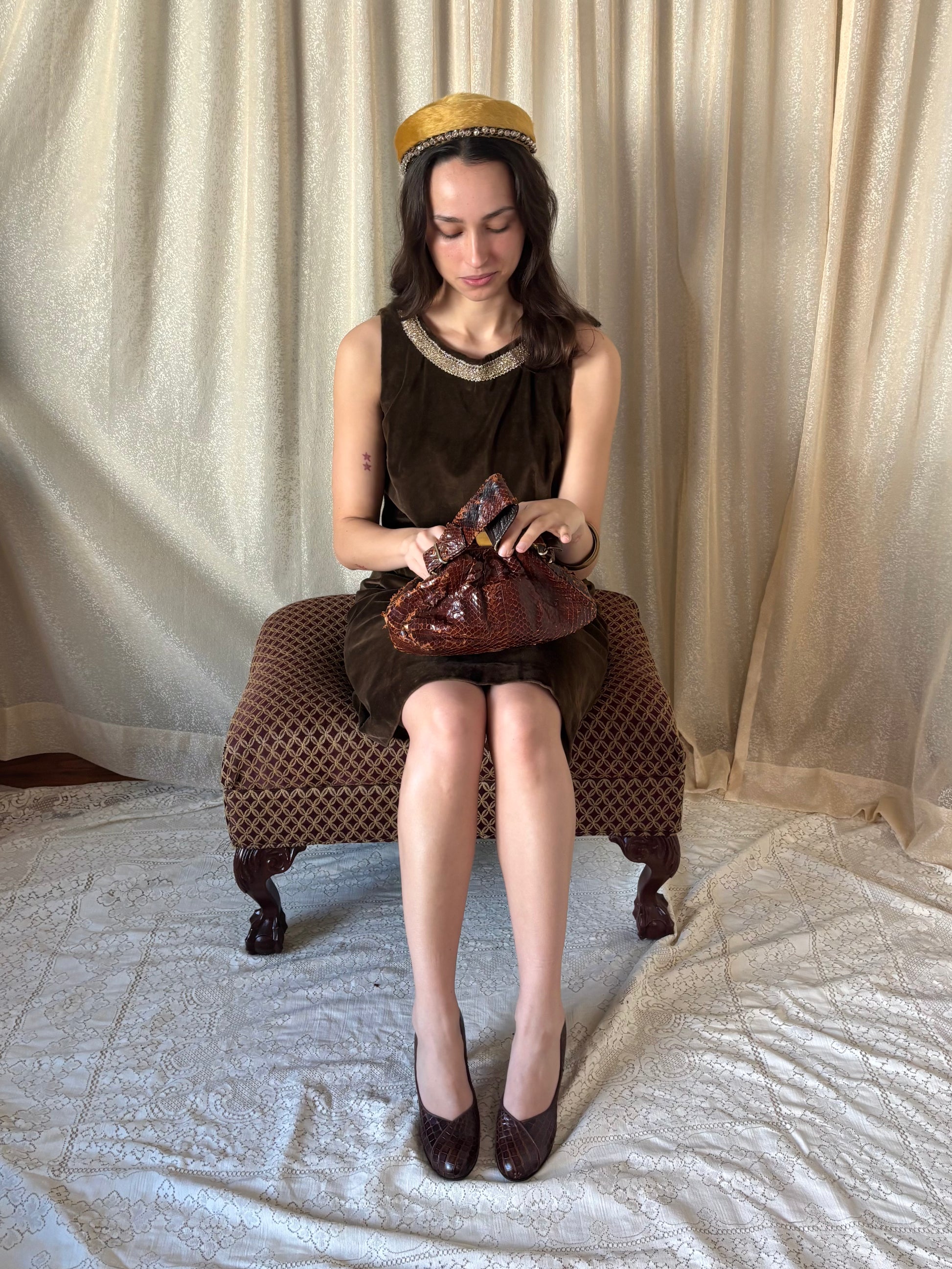 Vintage yellow melusine (rabbit hair blend) pillbox hat with beaded braided trim.